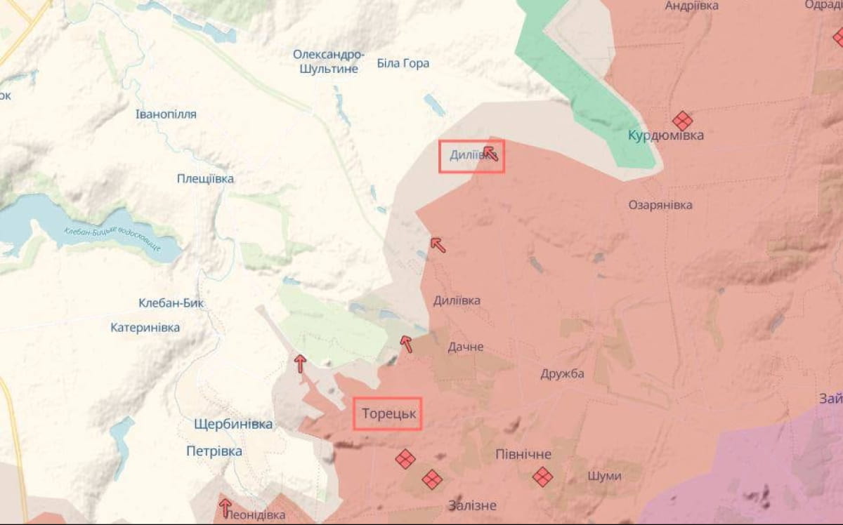 "Враг оккупировал Разино, а также продвинулся возле Видродження, Торецка, Дилиевки и Красного Первого", – говорится в сообщении.