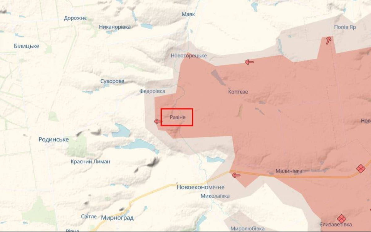 Враг оккупировал село Разино Донецкой области, также продвинулся в 4 населенных пунктах. Об этом свидетельствуют обновленные данные аналитического проекта DeepState.
