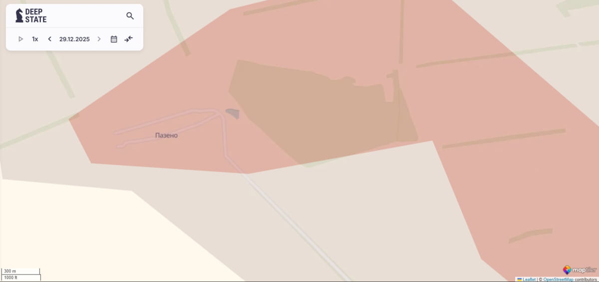 "Карта обновлена. Враг оккупировал Пазено, Переездное и Кузьминовку (Донецкая обл.), а также продвинулся вблизи Андреевки (Сумская обл.) и в Мирнограде (Донецкая обл.)", – говорится в сообщении.