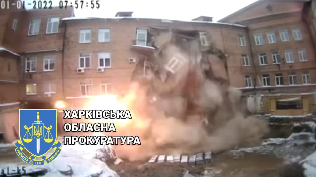 Харьковская областная прокуратура опубликовала на Youtube запись момента обвала 4-этажного дома в Харькове.