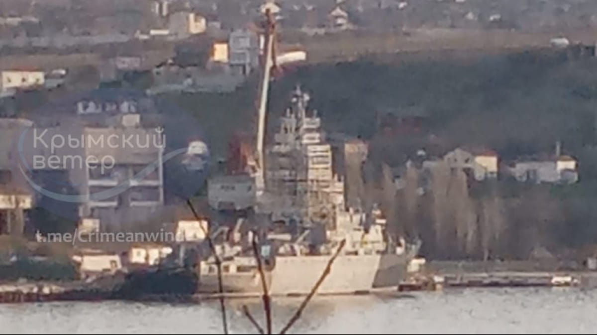 В временно оккупированном Севастополе был замечен российский корабль-разведчик "Иван Хурс" со значительными повреждениями после обстрелов.