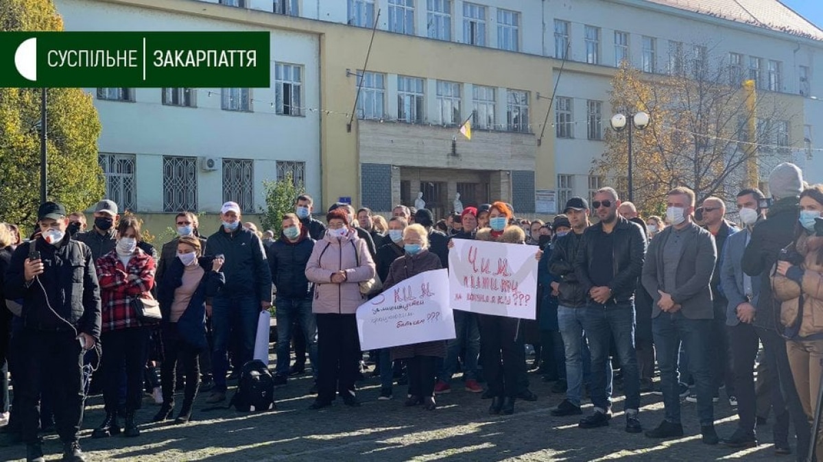В Ужгороде протестуют против усиления карантина. Возле Закарпатской ОГА собрались около трехсот местных предпринимателей, они против закрытия торговых точек. Поскольку тогда они не смогут платить налоги, информирует "Общественное".