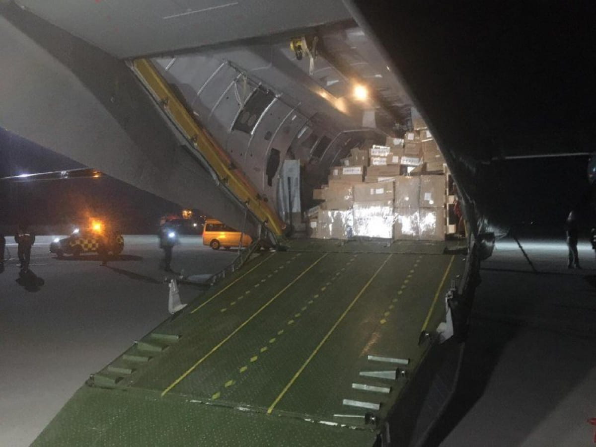 В медицинском грузе: тесты экспресс-диагностики на коронавирус, тесты полимеразной цепной реакции, костюмы биозащиты, маски и другие средства для борьбы с распространением инфекции.