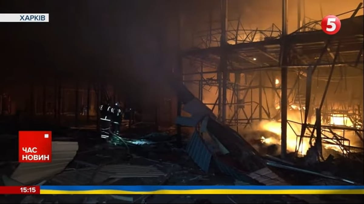 На местах прилетов вспыхнули масштабные пожары, самый крупный из которых охватил территорию торгового центра. Огонь в магазинах с тканями и обувью спасателям удалось окончательно обуздать лишь около часа дня.