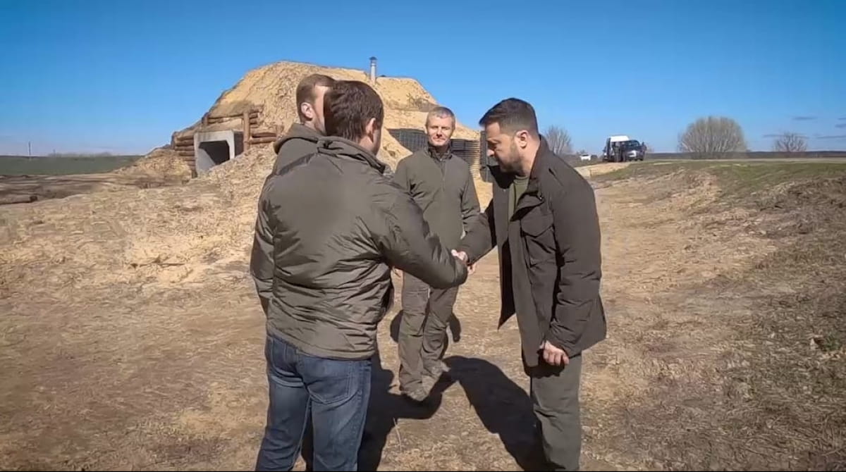 В ходе визита Зеленский осмотрел железобетонные конструкции, траншеи, блиндажи, места для ведения огня, окопы для БТР, а также противотанковый ров.