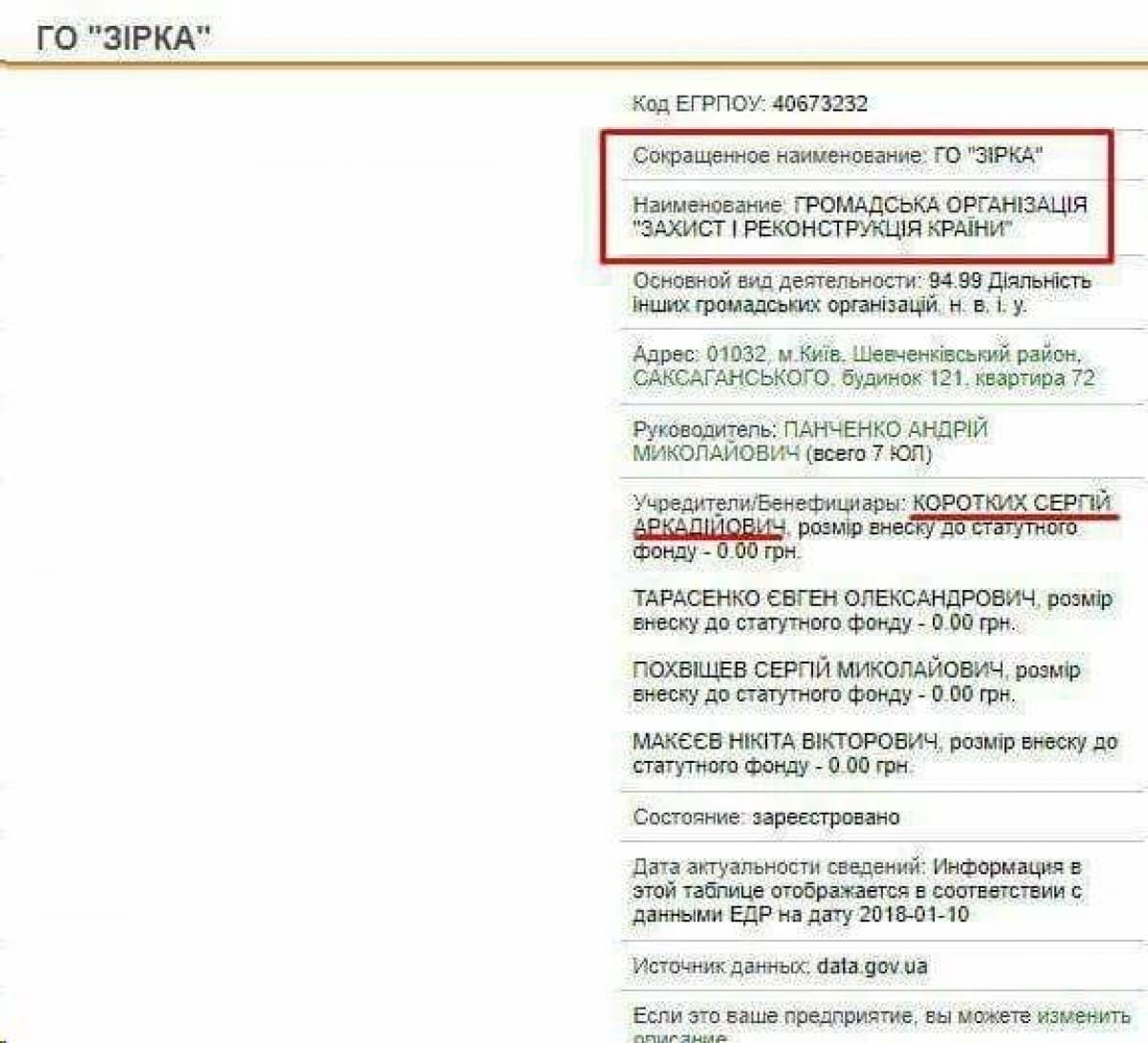 После получения украинского гражданства Коротких возглавляет отдел полиции охраны объектов стратегического значения и, соответственно, заполняет декларацию. В документе значится официальная зарплата на уровне 6,5 тысяч гривен. При этом человек декларирует две квартиры, самолет Л-39, наличные (223 тыс. долларов, 135 тыс. евро и 500 тыс. гривен), а также 565 тыс. евро, которые ему задолжало определенное лицо, и другие ценные вещи.
