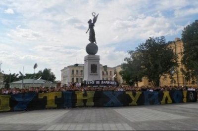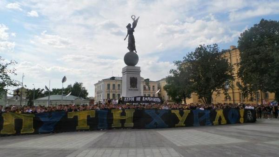 Під єдиною символікою та зі спільною піснею, уже добре відомою усьому світові, юнаки рушили від площі Конституції до стадіону "Металіст". Футбольні фани київського "Динамо" та харківського "Металіста" об'єдналися навколо ідеї єдності України і разом скандували "Ні війні на Донбасі", а також передали вже традиційні "вітання" президенту Росії Путіну.