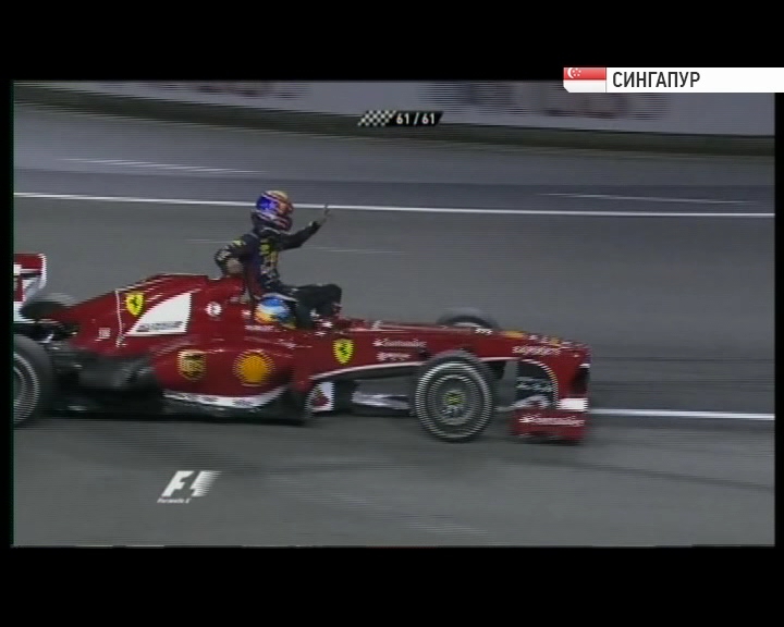 І все – через порушення спортивного регламенту та створення небезпечної ситуації. На етапі у Сінгапурі після того, як несправна машина Уеббера зупинилася, він вийшов на трасу без дозволу маршалів. А до закритого парку його на своєму «Феррарі» підвіз Фернандо Алонсо, якого за цей вчинок також було попереджено. Однак у пілота «Ред Булл» вже були два зауваження, отримані у цьому сезоні, відтак всі проколи Уеббера зрештою перетворились на покарання у десять стартових сходинок.