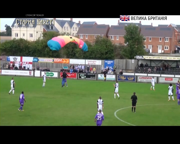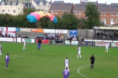 Достатньо просто ефектно з'явитися у потрібному місці в потрібний час. Так, під час матчу п'ятого англійського дивізіону, в якому зійшлися «Солсбері Сіті» і «Честер» над ареною «Реймонд Макен-хілл» з'явився парашутист, і не вигадав нічого кращого, як приземлитися на газон. Арбітр був вимушений зупинити зустріч, допоки непроханий гість не зібрав свою амуніцію та не залишив футбольне поле. Вийшло у нього це доволі швидко. А близько тисячі глядачів, які зібралися на стадіоні, оцінили несподіваний епізод і проводжали підкорювача неба оплесками. Футболісти ж назвали це найбільш дивною пригодою, яка траплялася із ними під час матчів. Ну і зазначимо – протистояння із перервою на видовище завершилося перемогою місцевого «Солсбері» з рахунком 3:1.