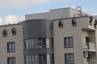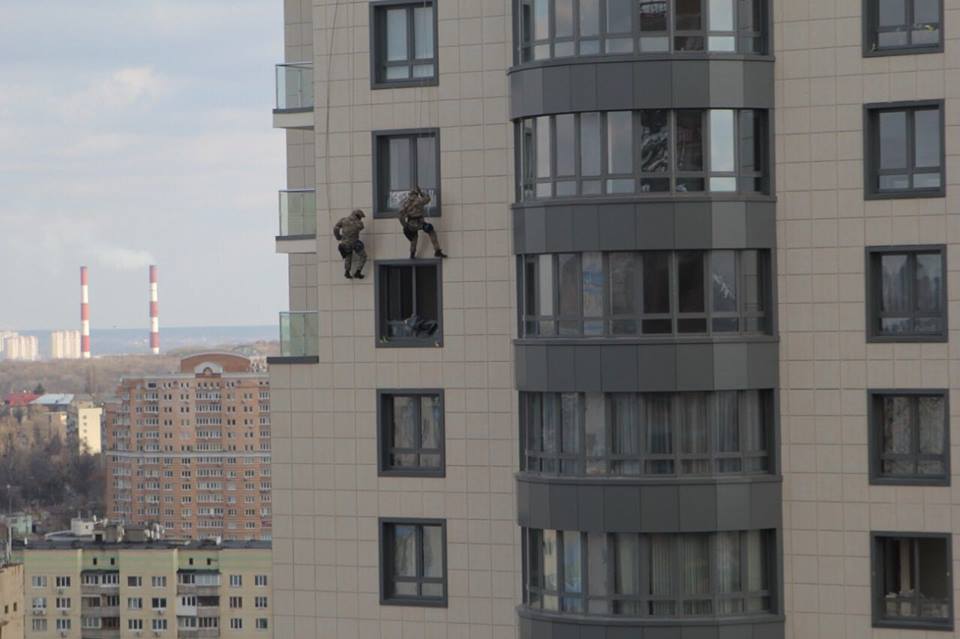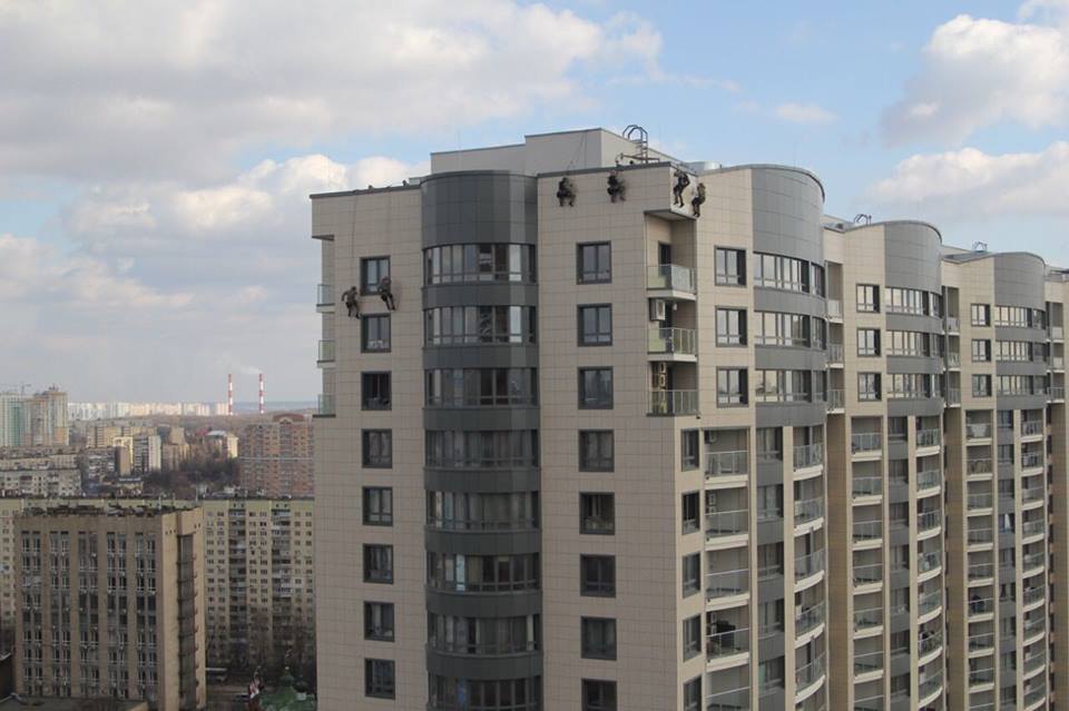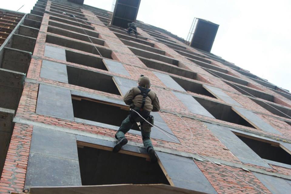 "Свої здібності, набуті під час виснажливих тренувань, бійці КОРД продемонстрували на висоті 80 метрів в одній з висоток столиці. 10 спецназівців показали неочікуваний для зловмисника вхід у приміщення з метою звільнення заручників", – написав він.