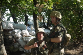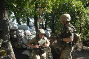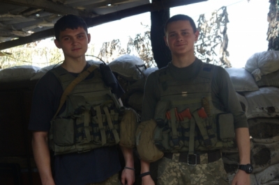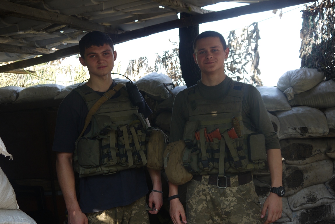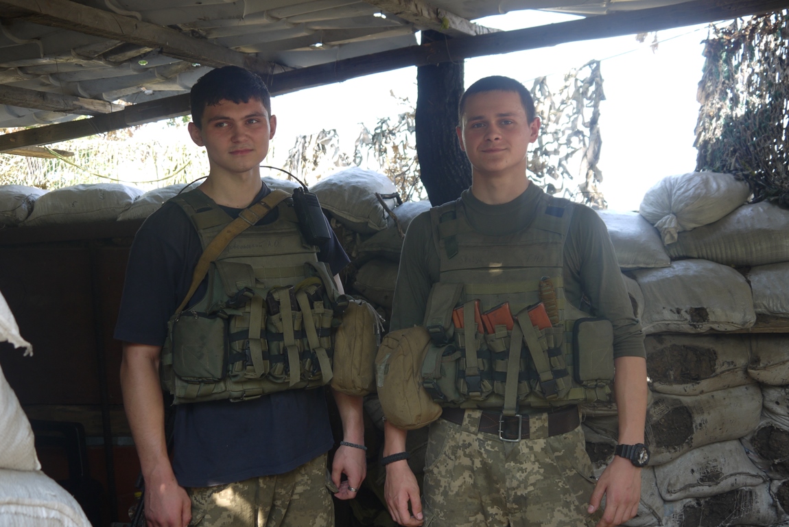 Знайомлячись з військовослужбовцями, помічаю двох на вигляд зовсім юних - це 19-річні бійці із Івано-Франківщини, вони підписали контракт півроку тому. Служать на позиціях біля Красногорівки. Бійці однолітки познайомилися в учебці. Обоє розповідають, що вдома намагалися переконати відмовитися від ідеї підписувати контракт, проте, це рідним так і не вдалося. Хлопці підписали контракт на 3 роки, хоча обоє кажуть, якщо за цей період бойові дії не закінчаться, будуть воювати до останнього дня війни. На питання, що було мотивом підписати контракт, в один голос відповідають: "Хотіли воювати за свою країну і дуже хочемо, щоб у нашій країні був мир".
