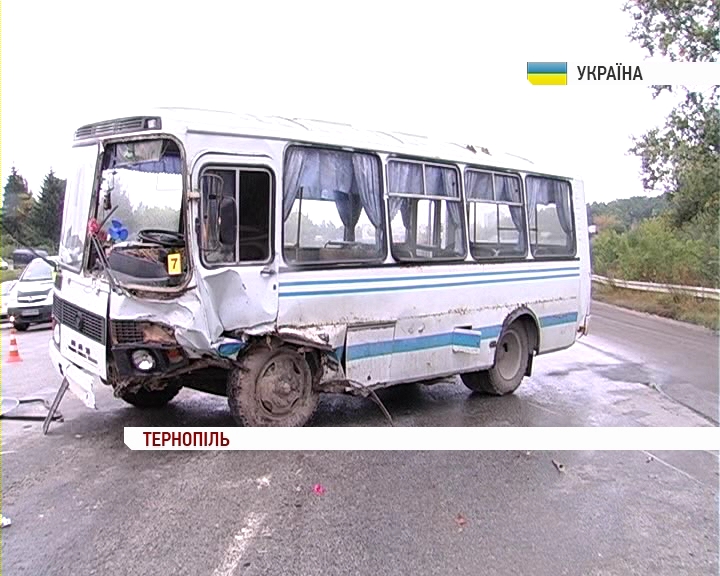 Водій таксі виїхав на смугу зустрічного руху і зіткнувся із маршрутним автобусом. Таксист та його пасажир загинули на місці. Причину аварії з'ясовуть. Ані водій, ані пасажири автобуса не зазнали серйозних травм. Одну жінку лікарі забрали до лікарні, але згодом відпустили додому.