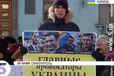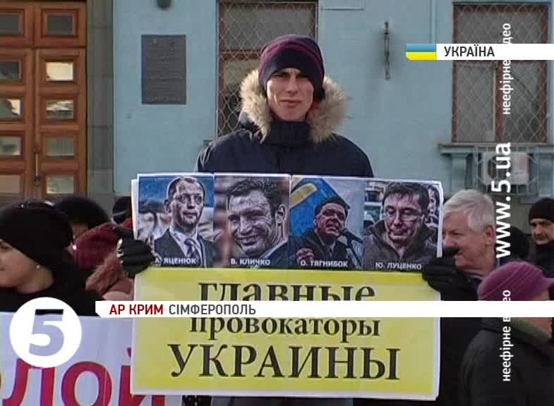 Про акцію дізналися із соцмереж у Інтернеті. Під прапором Російської Федерації люди вимагали зупинити Євромайдани, не пікетувати держадміністрації. Протестувальники кажуть, що підтримують чинну владу, дії Президента України та силовиків, які протистоять протестам у Києві. Насамкінець акції учасники вишукувалися біля стін Ради міністрів Криму. Кажуть, що готові захищати його від захоплення.