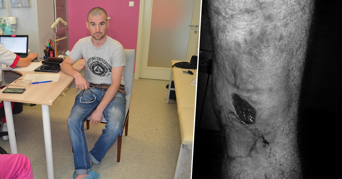 Через безрезультативне лікування після поранення, у хлопця на нозі розривається шкіра під час ходьби. У випадку Дмитра рана під коліном загоюється, а потім знов відкривається вже з пів року, Дмитро змушений постійно приймати імуностимулюючі препарати (зараз п’є противірусні), так як є велика ділянка, яка не покрита шкірою. Повне відновлення можливе лише за допомогою унікальних біотехнологій у проекті "Біотех-реабілітація поранених".
