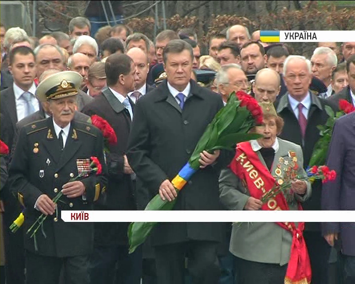 Президент – із самого ранку вже біля Вічного вогню, покладає квіти. Слідом за ним – попередники. Так відзначають 70-ту річницю вигнання військ Вермахту з Києва. Далі – урочисті збори в палаці «Україна».