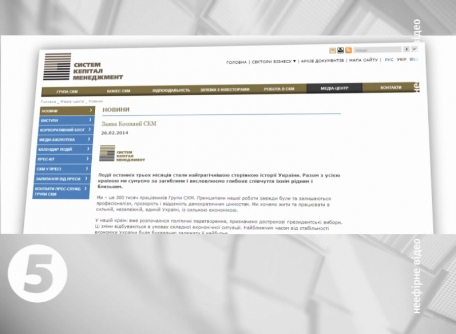 У повідомленні йдеться – Україна потребує завершення періоду політичної нестабільності. В СКМ, до якого входять найбільші гірничо-металургійні, енергетичні, видавничі і медіа-компанії та банки, наголосили, що не зупиняють роботу попри кризу. Також у компаніях Ахметова заявили – країна потребує прозорої діяльності влади, яка буде підзвітна громадянському суспільству. Там вважають, що державне управління має отримати ефективні механізми управління, а місцеве самоврядування – ширші повноваження.