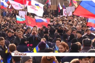 Вигукуючи гасла «Росія» та «референдум» мітингувальники рушили до облдержадміністрації. Замість державного прапора підняли над спорудою російський триколор. За дійством спостерігав і прокурор міста.