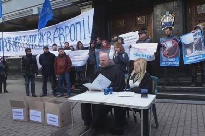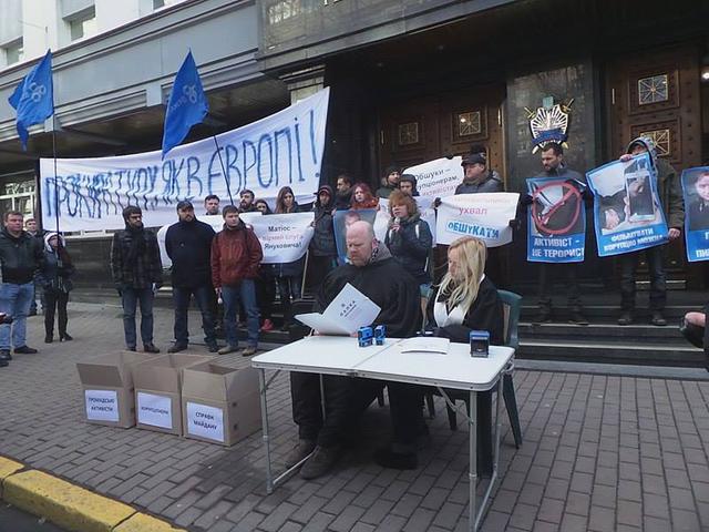Акцію протесту та перформенс "Фабриканти компромату" влаштували під Генеральною прокуратурою активісти "Автомайдану". Під будівлею розмістили символічний суд, де штампували справи проти громадських активістів.
