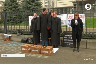 Конституційний суд у закритому режимі продовжує розглядати справу щодо конституційності закону "Про очищення влади". Перед початком засідання під будівлею суду відбулася акція, учасники якої упевнені, що шестеро суддів мають конфлікт інтересів у справі про люстрацію. Про це повідомляє "5 канал".