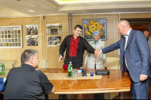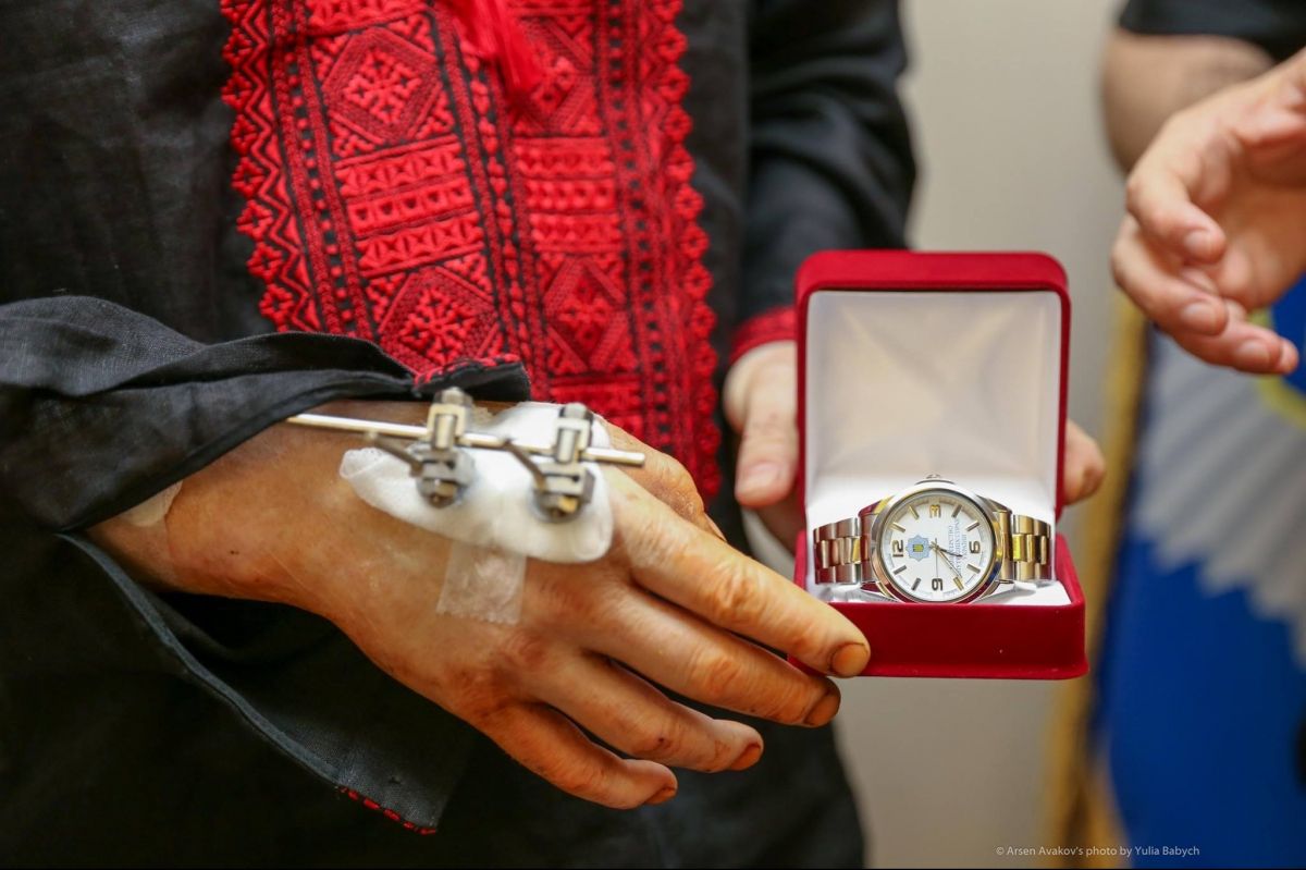 "Був радий нагородити бійця поліцейського добробату Аміну замість старенького ПМ (що заклинив на четвертому пострілі) – новеньким Glock-43... Адаму вручив спеціальний годинник", – повідомив Аваков.