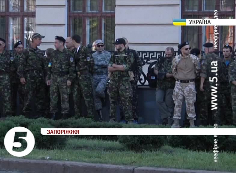 Під час пікету вздовж стіни мерії вишикувався кордон місцевих самооборонівців, щоб не сталося сутичок чи провокацій.