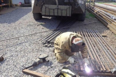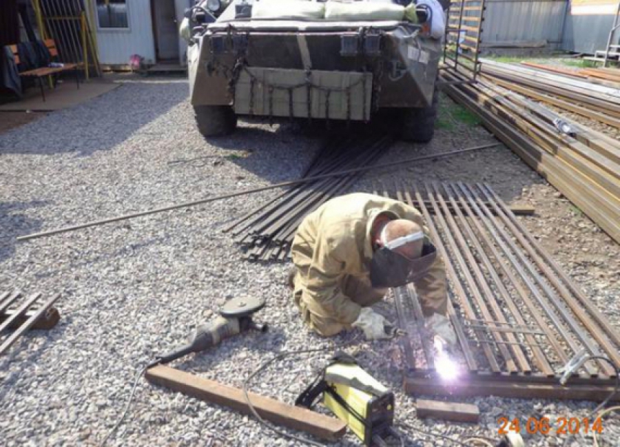 До БТРа приварюють решітку – це додатковий захист від кумулятивних снарядів, а потім на броню встановлять великокаліберні кулемети. Крмі захисту, встановлюють додаткові полиці для речей – за рекомендаціями самих нацгвардійців. На модернізацію однієї машини йде два дні.