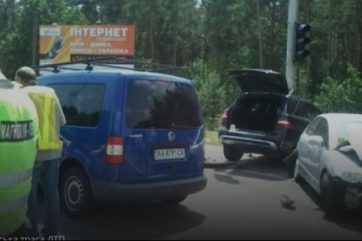 "Автомобіль "Мерседес" на перехресті збив скутер, вдарив "Хонду" та врізався у дерево. "Хонда", своєю чергою, протаранила ще одну іномарку.