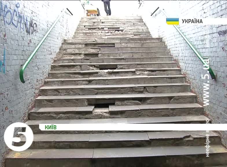Анна Грішина, «5 канал»: «Єдиний спосіб перейти дорогу у такому пожвавленому місці - скористатися підземним переходом. Але навіть він не гарантує безпеки пішоходам. Адже понівечені сходи більше нагадують смугу перешкод, яку щоденно змушені долати кияни. Постає запитання, хто відповідає за ремонт таких споруд».