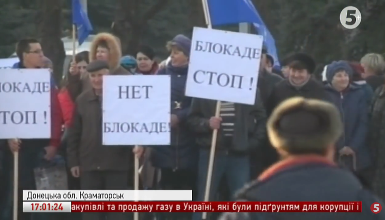 Місцеві також висловили прогнози про ймовірне закриття підприємств міста. Це вони пов'язують з так званою "економічною блокадою" Донбасу. "Якщо не буде електропостачання, як ми будемо жити? Без світла?" - питаються краматорчани.