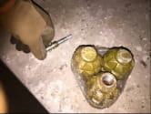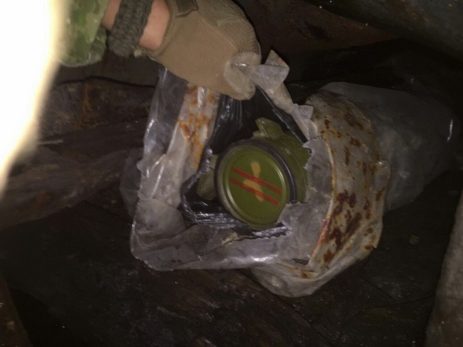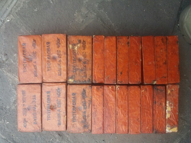 Як стало відомо, у схові, підходи до якого були заміновані розтяжкою з трьома гранатами Ф-1, правоохоронці натрапили на понад п’ять кілограмів тротилу у шашках.