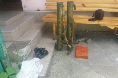 Схованку з двома реактивними піхотними вогнеметами "Джміль" зі стертим маркуванням виявили співробітники Служби безпеки України в районі проведення антитерористичної операції. Про це повідомляють у прес-службі СБУ.