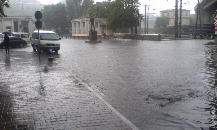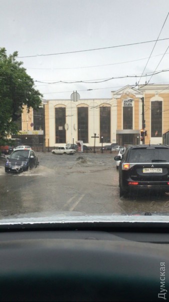 Станом на 10:45, за інформацією мерії, найскладнішою ситуація залишається на Приморській вулиці – там обмежено рух. Однак по Балківській, незважаючи на те, що потік води зриває люки, проїхати можна.