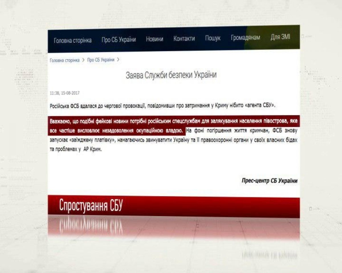 Як повідомили в СБУ, російська ФСБ вдалася до чергової провокації, повідомивши про затримання у Криму нібито "агента СБУ".