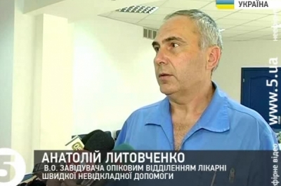 Анатолій Литовченко, в.о. завідувача опіковим відділенням лікарні швидкої невідкладної допомоги: «С момента поступления проводилась инфузионная терапия, выполнен туалет ожоговых ран, больной находится в повязках, состояние застабилизировалось. Имеется даже можно сказать положительная динамика ран. В настоящее время клиники поражения дыхательных путей нет. Прогноз в медицине дело неблагодарное, тяжелое состояние в настоящее время, больной стабилен».