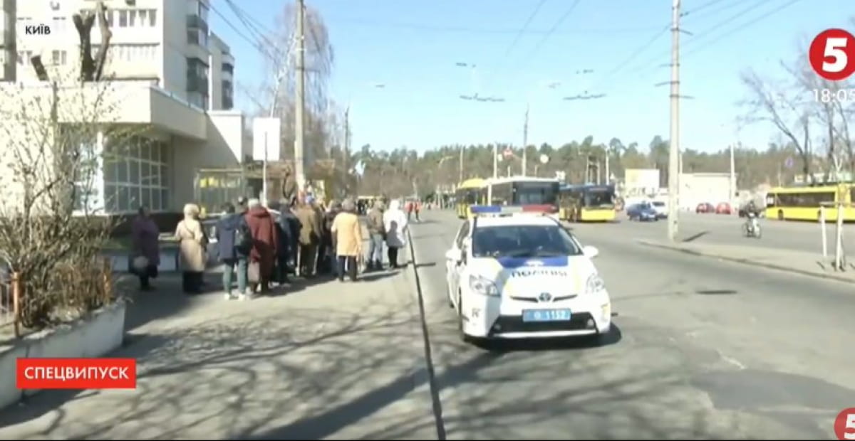 Тим часом водії маршруток та тролейбусів у Києві намагаються дотримуватися вимог карантину, який діє від понеділка – запускають у салон лише по десять пасажирів. Контролюють це також і поліцейські. На зупинках роз'яснюють людям, що не варто порушувати цих правил та вмовляють тих, хто зайвий у транспорті, вийти.