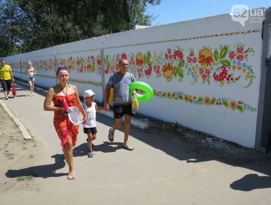 Пофарбувати паркан у білий колір художниці допомогли солдати, а всього на розпис огорожі пішло три тижні, зазначили в адміністрації Донецької області.