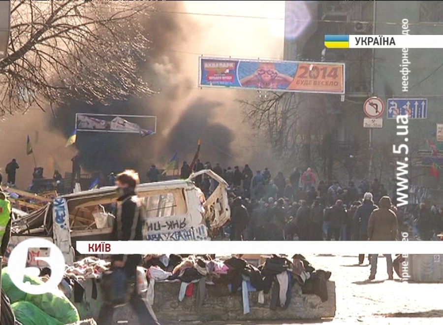 Тим часом центральний штаб революції догорає. У підпаленій напередодні будівлі обвалилися перекриття на 4 та 5 поверхах. Звідти не можуть забрати речі орендарі приміщень і власники приватних фірм.