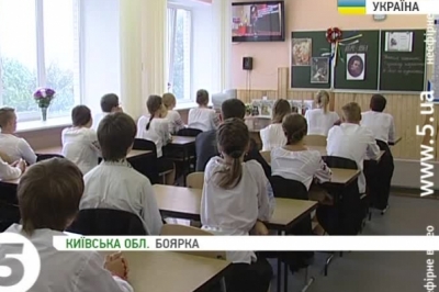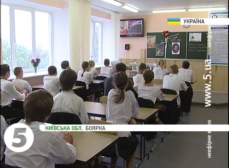 Перший урок цьогоріч - про Тараса Шевченка. Спершу - перегляд відеоуроку по телебаченню. Опісля - традиційний - пам'яті поета. Учні експериментом задоволені - на перерві діляться враженнями: