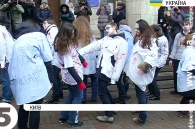 Весь їхній одяг був забруднений червоною фарбою – умовною кров'ю. Вони кидалися на перехожих, вимагали повернути Пореченкова та Охлобистіна та навіть намагалися вдертися всередину будівлі Нацради. Таким чином організатори акції показали руйнівну силу російських пропагандистських серіалів і програм.