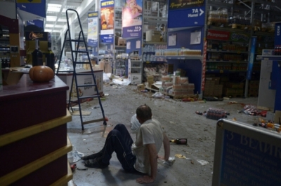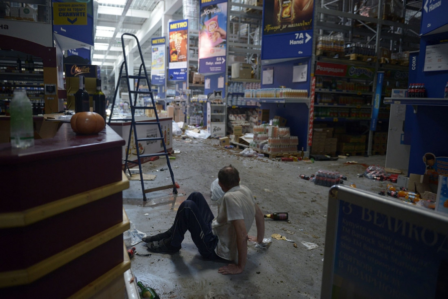 Попри постріли та вибухи, які регулярно там лунають, охочих задарма винести з магазину речі не меншає - і полиці порожні вже на дві-третини. Це при тому, що тягнуть звідти товар люди на собі, бо автівкою не підЇхати - є загроза,що підірвуть, а візки вже усі розкрали.