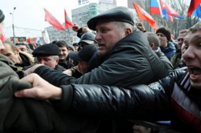 Вони вже заявили про створення самопроголошеної народної обласної ради. Закликають зносити до будівлі обласної держадміністрації шини. Сепаратисти також намагаються перекрити вулицю Артема, щоб не допустити на площу автобуси з міліцією. Два поверхи будівлі зайняли близько 200 людей. Мітингарі готуються встановити наметове містечко під ОДА.