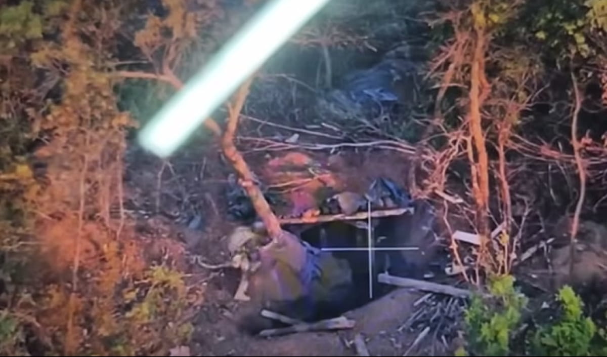 Черговий FPV-дрон летить до бліндажа, де перебувають росіяни. Приміряється, як краще до них залетіти. Зараз буде третій "бабах". Є!