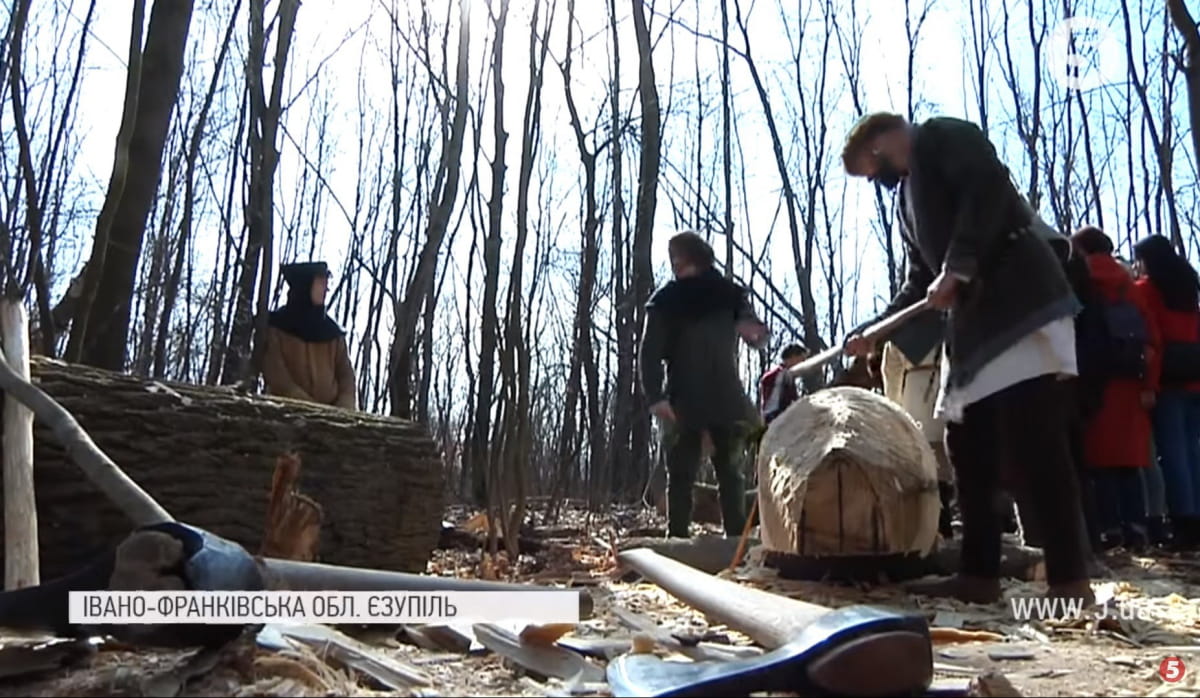 Копію старовинного човна-довбанки ХІІІ століття майструють ентузіасти на Івано-Франківщині. Над виготовленням судна працюють 10 умільців із різних регіонів України. Живуть там, де і працюють – у лісі. Та й табірний побут облаштували за часом тієї епохи середньовіччя.