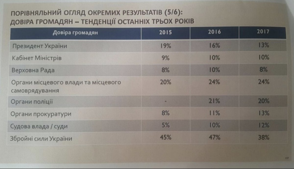Так, згідно з опитуванням, довіра до поліції знизилась з 21 до 20%, до прокуратури – зросла з 8 до 13%.