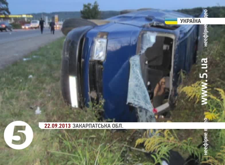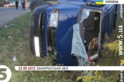 ДТП сталася напередодні ввечері на трасі Мукачеве-Львів. Поблизу села Верхній Коропець мікроавтобус наїхав на пішохода і перекинувся. Постраждалий помер на місці. Усіх 9-х пасажирів автівки, серед яких дворічна дитина, ушпиталили із різними травмами. За фактом ДТП міліція відкрила кримінальне провадження.