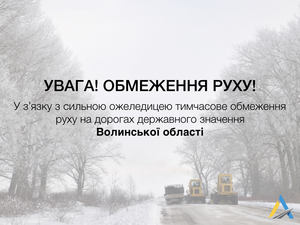 "У зв'язку з екстремальними погодними умовами - утворенням сильної ожеледиці на дорожньому покритті в результаті дощу та мінусовій температурі, було прийнято рішення закрити рух транспорту у межах Волинської області до повної ліквідації негоди", - йдеться у повідомленні.