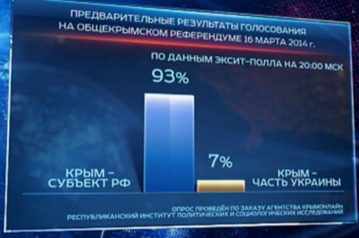 За цими даними, лише 7% виборців захотіли залишитись в складі України. Екзит-пол перевірити неможливо, оскільки проводити його сепаратисти дозволили лише одній організації - кримському "Республіканському інституту політичних і соціологічних досліджень" на замовлення агентства "Крим-інформ".