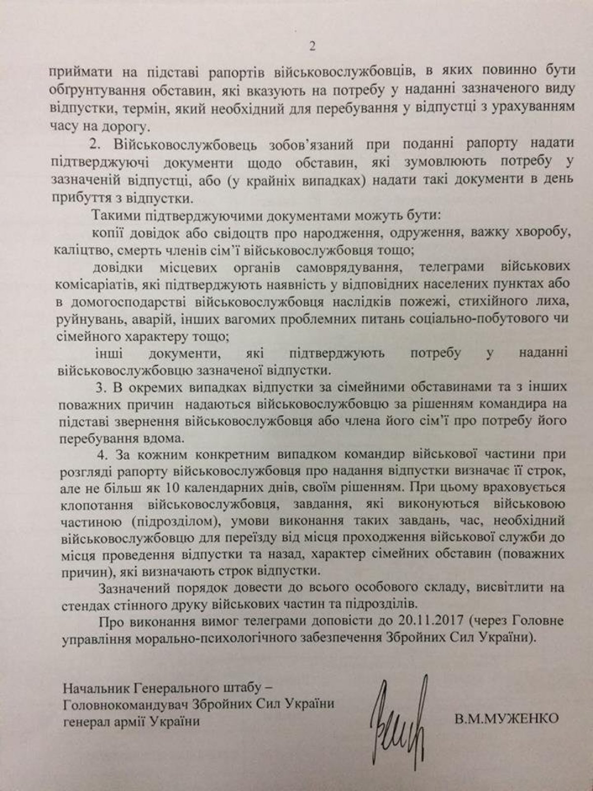 Головнокомандувач ЗСУ Віктор Муженко вимагає від командирів усіх рівнів дотримуватися порядку надання відпусток за сімейними обставинами. Про це сказано в повідомленні юридичної служби Збройних сил України у Facebook.