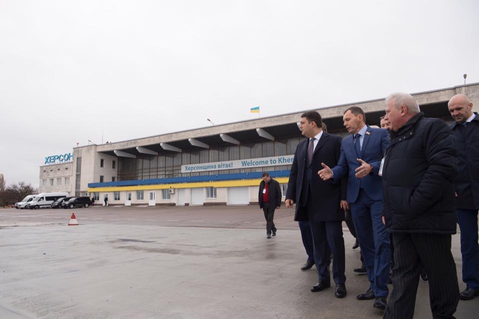 Візит до Херсона прем'єр розпочав з огляду місцевого міжнародного аеропорту.