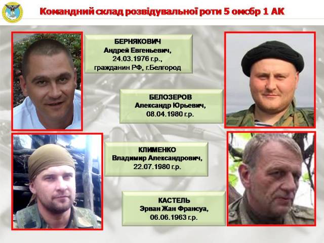 Головним управлінням розвідки Міноборони України ідентифіковано особовий склад розвідувальної роти 5-ї окремої мотострілецької бригади (військова частина 08805, м. Макіївка) так званого "1-го армійського корпусу" Центру територіальних військ (Новочеркаськ) Південного військового округу (Ростов-на-Дону) Збройних сил Російської Федерації, який виконує злочинні накази воєнно-політичного керівництва Російської Федерації та винний у цілеспрямованому знищенні цивільної інфраструктури Донбасу і загибелі мирних мешканців.